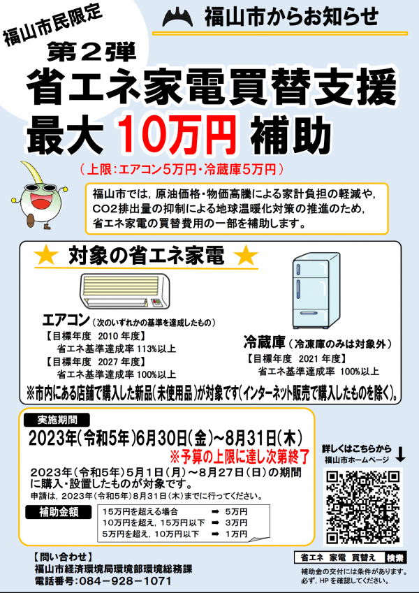 | 補助対象家電 | エアコン、冷蔵庫、冷凍庫、テレビ、LED照明器具、電子レンジ、炊飯ジャーなど |